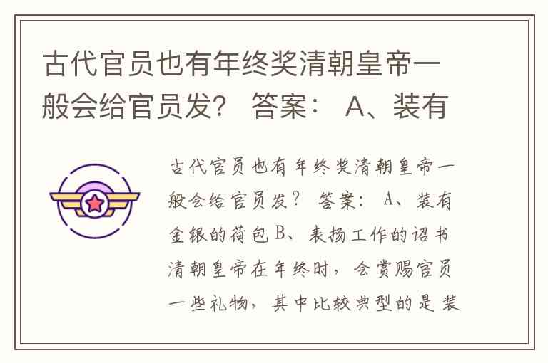清朝皇帝在年终时,会赏赐官员一些礼物,其中比较典型的是 装有金银的荷包(有时也叫“岁岁平安”荷包,内装金银锞子、金银元宝等),这实际上是一种变相的年终奖金。