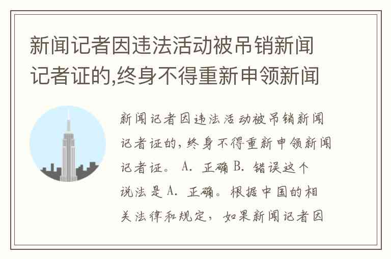 新闻记者因违法活动被吊销新闻记者证的,终身不得重新申领新闻记者证。 A. 正确 B. 错误