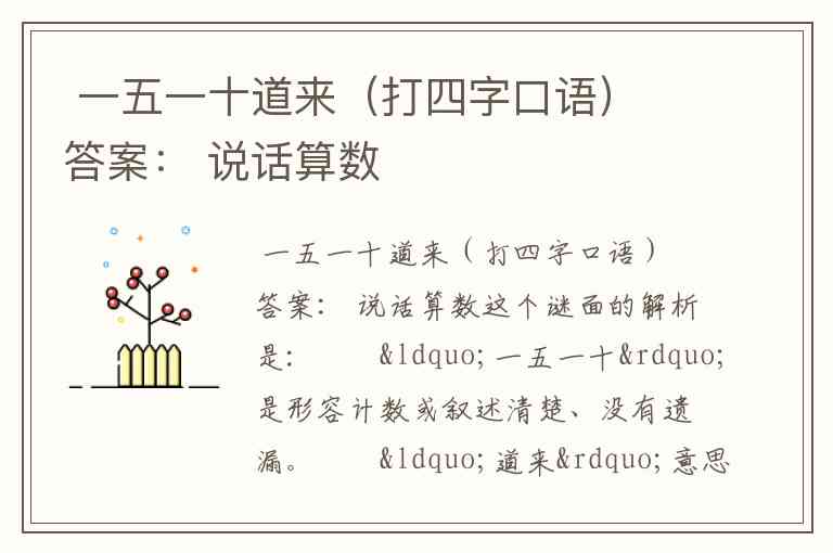 “一五一十”是形容计数或叙述清楚、没有遗漏。