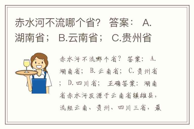 赤水河不流哪个省? 答案: A.湖南省; B.云南省; C.贵州省; D.四川省; 正确答案:湖南省