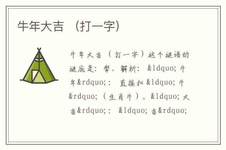 牛年大吉 (打一字)
