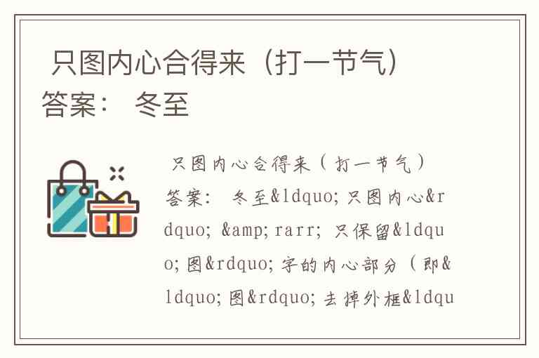 只图内心合得来(打一节气) 答案: 冬至