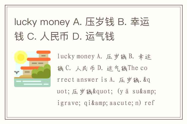 lucky money A. 压岁钱 B. 幸运钱 C. 人民币 D. 运气钱