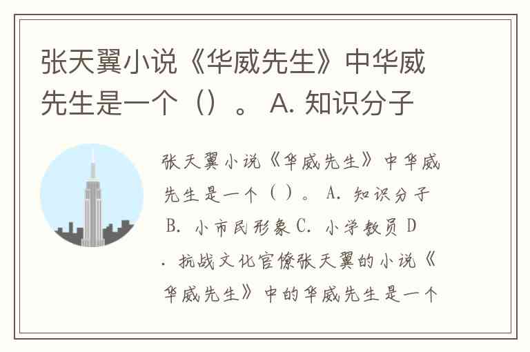 张天翼小说《华威先生》中华威先生是一个()。 A. 知识分子 B. 小市民形象 C. 小学教员 D. 抗战文化官僚