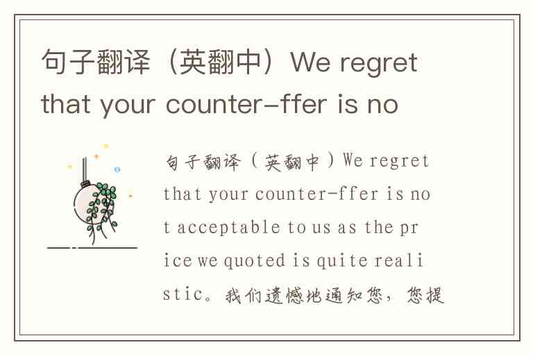 句子翻译(英翻中)We regret that your counter-ffer is not acceptable to us as the price we quoted is quite realistic。