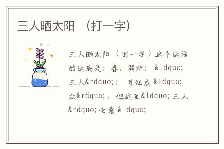 解析: “三人”: 可组成 “众”,但这里“三人”会意 “