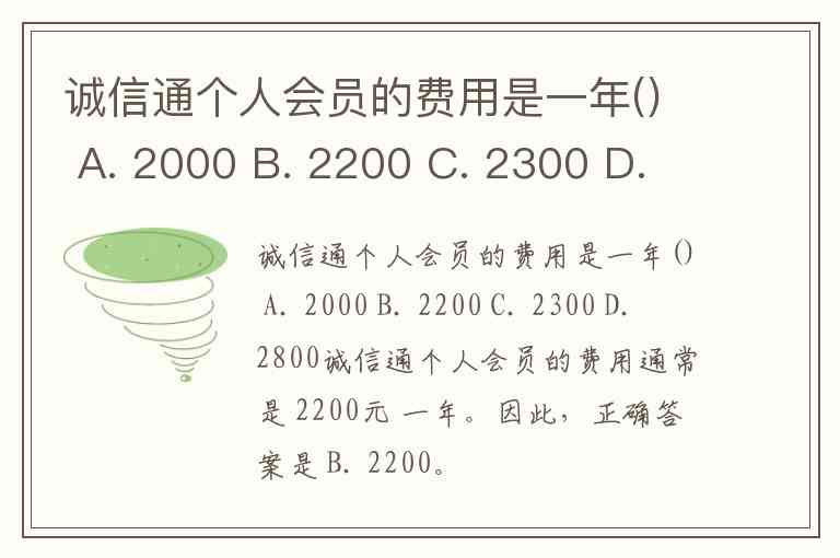 诚信通个人会员的费用是一年() A. 2000 B. 2200 C. 2300 D. 2800