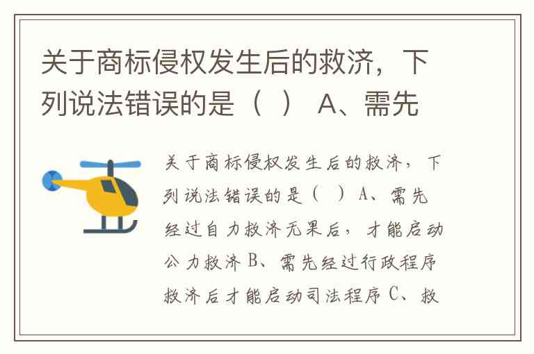 A 错误,因为商标侵权发生后,权利人并非必须“先经过自力救济”才能启动公力救济,可以直接向行政机关投诉或向法院起诉。