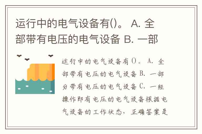 运行中的电气设备有()。 A. 全部带有电压的电气设备 B. 一部分带有电压的电气设备 C. 一经操作即有电压的电气设备