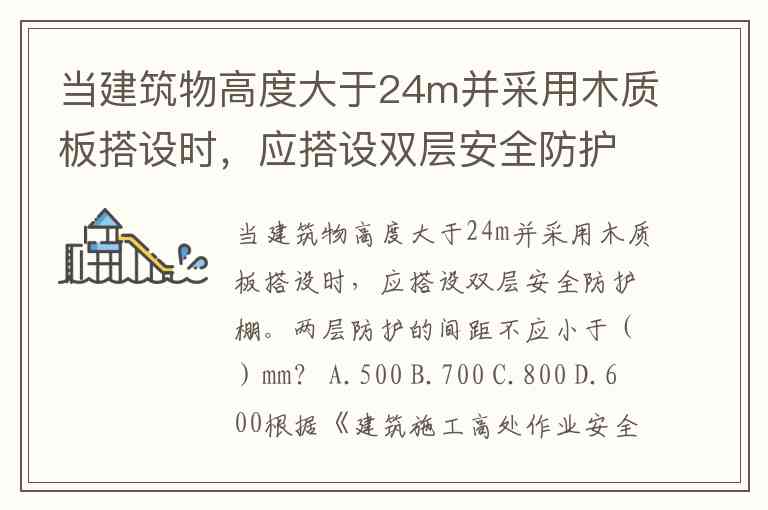 当建筑物高度大于 24m 并采用木质板搭设时,应搭设双层安全防护棚,两层防护的间距不应小于 700mm。