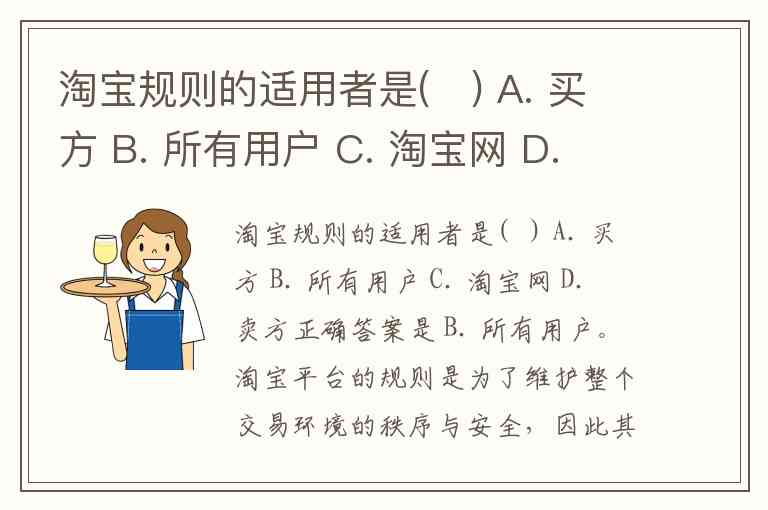 简单来说,只要您使用淘宝网,就必须遵守其用户协议和各项规则。所以,“所有用户”是最全面和准确的答案。