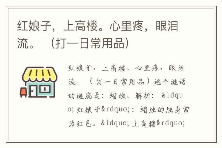 红娘子,上高楼。心里疼,眼泪流。 (打一日常用品)
