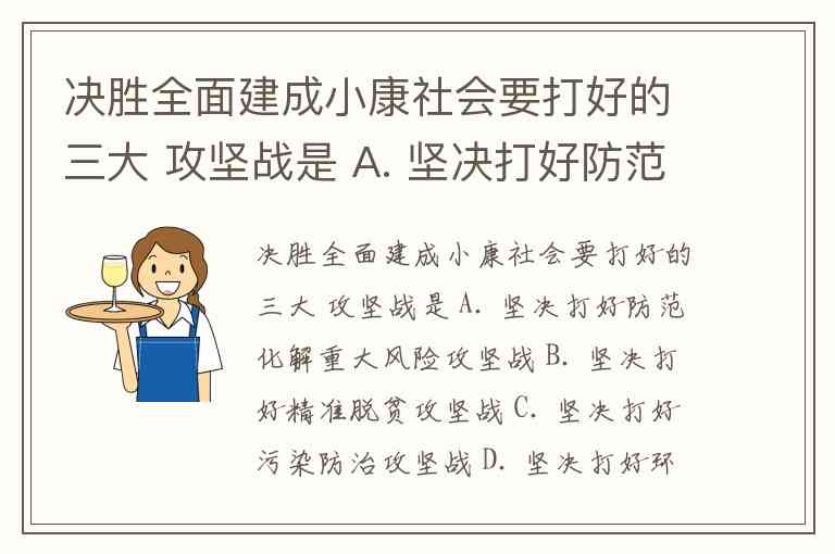 决胜全面建成小康社会要打好的三大 攻坚战是 A. 坚决打好防范化解重大风险攻坚战 B. 坚决打好精准脱贫攻坚战 C. 坚决打好污染防治攻坚战 D. 坚决打好环境保护攻坚战