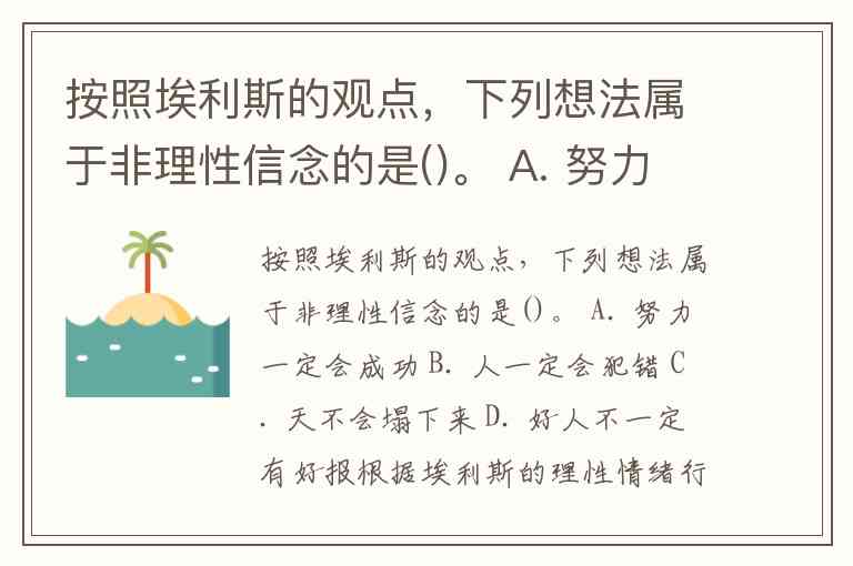 按照埃利斯的观点,下列想法属于非理性信念的是()。 A. 努力一定会成功 B. 人一定会犯错 C. 天不会塌下来 D. 好人不一定有好报