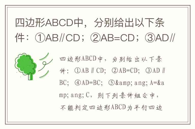 我们来分析一下四边形ABCD的条件,并看看哪一组条件不能判定四边形为平行四边形。