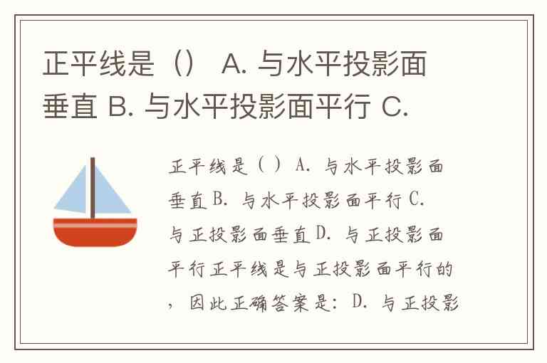 正平线是() A. 与水平投影面垂直 B. 与水平投影面平行 C. 与正投影面垂直 D. 与正投影面平行