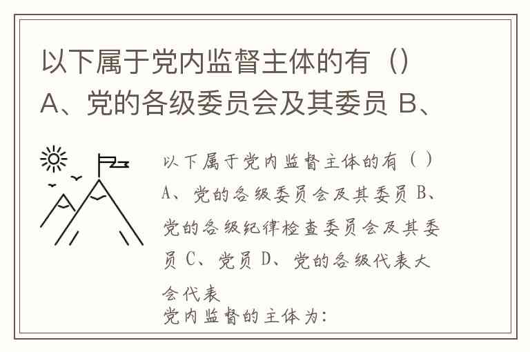 以下属于党内监督主体的有()A、党的各级委员会及其委员 B、党的各级纪律检查委员会及其委员 C、党员 D、党的各级代表大会代表