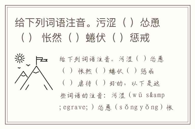 给下列词语注音。污涩( )怂恿( ) 怅然( )蜷伏( )惩戒( ) 虐待( )