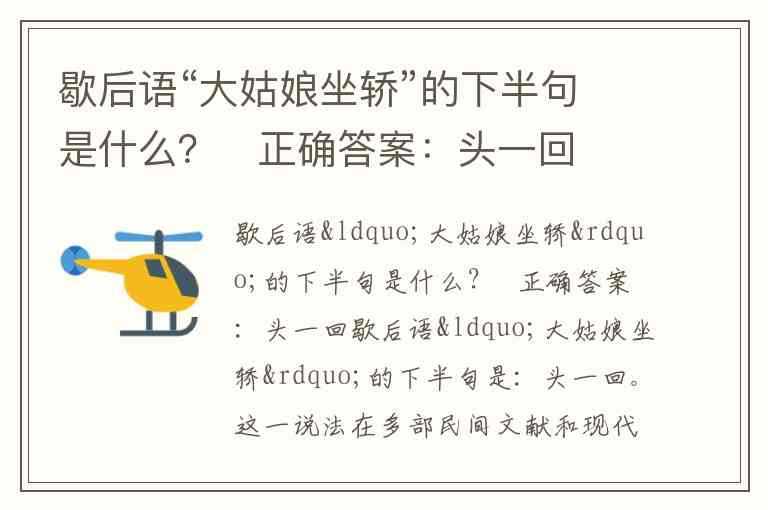 因此,“大姑娘坐轿——头一回”是这一歇后语的标准、广泛认可的表达形式。