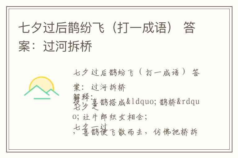 七夕过后鹊纷飞(打一成语) 答案:过河拆桥