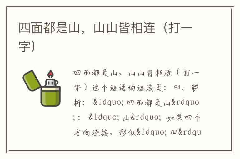 解析: “四面都是山”: “山” 如果四个方向连接,形似“田”字中间的“十”字架(将“田”拆开,四个方格像四面环山)。