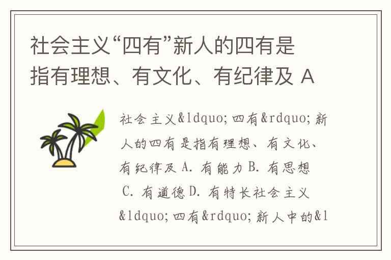 社会主义“四有”新人的四有是指有理想、有文化、有纪律及 A. 有能力 B. 有思想 C. 有道德 D. 有特长
