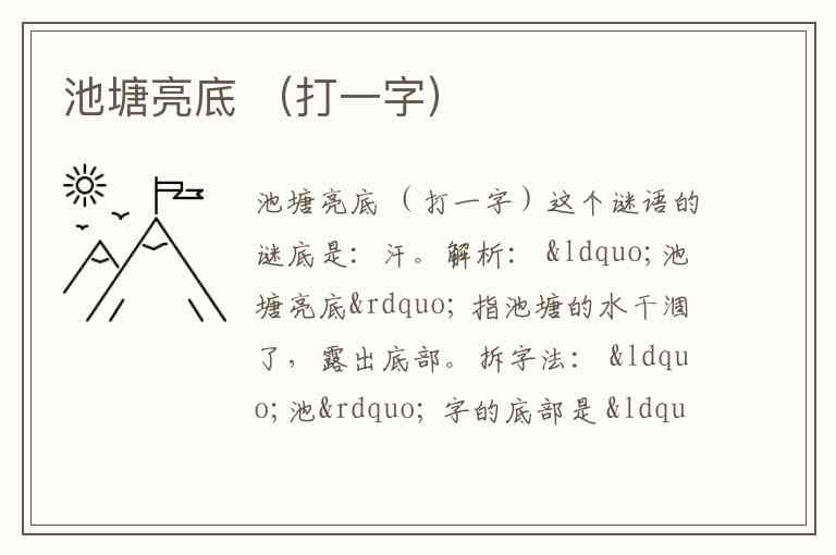 更巧妙的解法:“池塘” 扣“水”(氵),“亮底” 表示水干了,剩下 “干”。