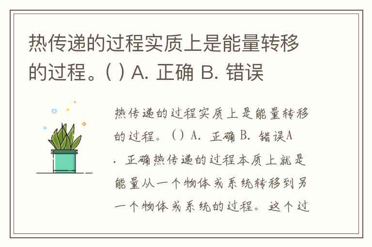 热传递的过程实质上是能量转移的过程。( ) A. 正确 B. 错误