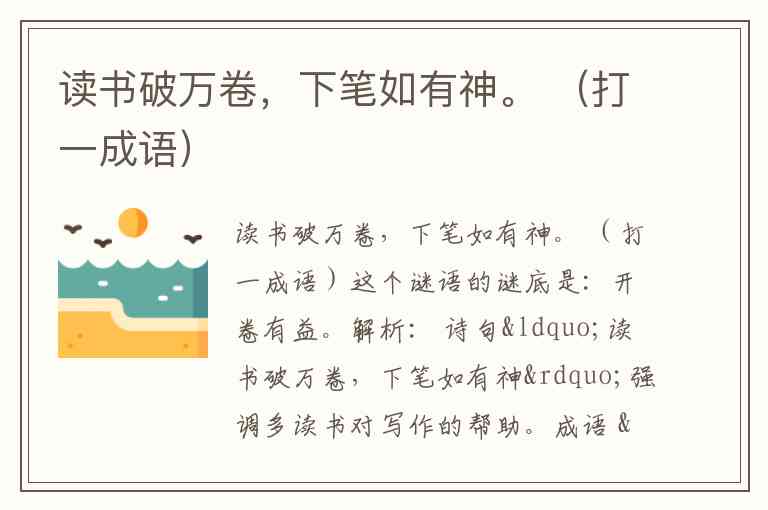 成语 “开卷有益” 意为打开书本阅读就会有益处,与谜面倡导读书的核心思想完全契合。