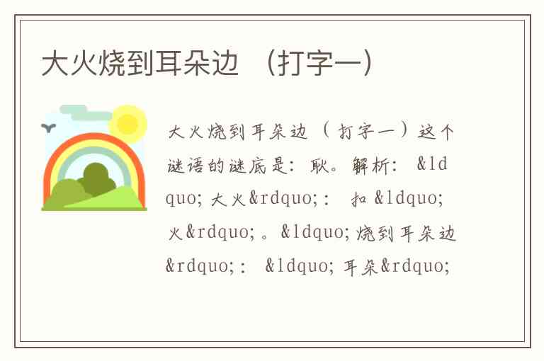 “烧到耳朵边”: “耳朵”扣 “耳”,“边”表示位置相邻。