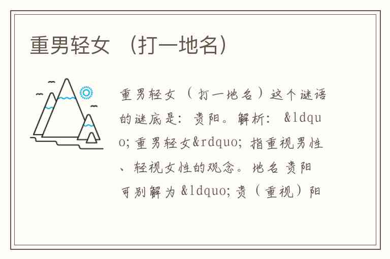 此谜利用汉字中“阳”指男性的双关含义,与地名巧妙结合。