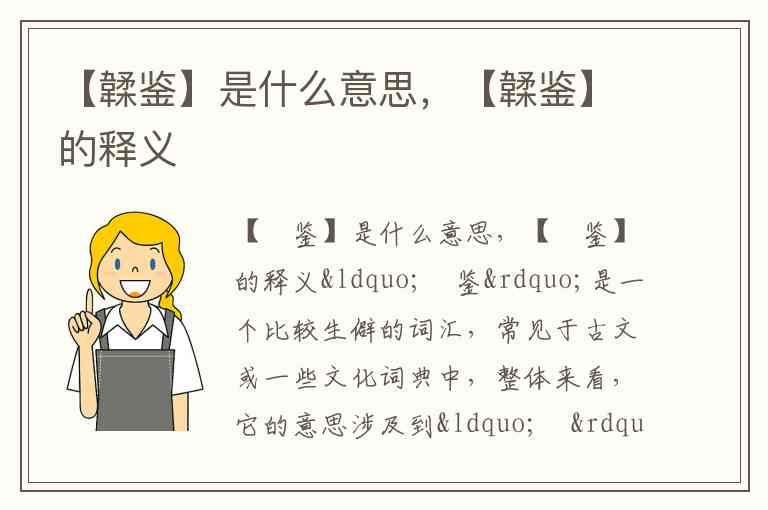 “韖鉴”是一个比较生僻的词汇,常见于古文或一些文化词典中,整体来看,它的意思涉及到“韖”和“鉴”这两个字的合成和象征含义。
