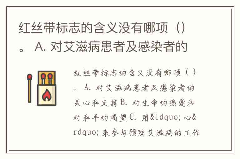 D. 对死去的艾滋病病人表示哀悼和怀念 是红丝带的另一个含义,表示对已故艾滋病患者的怀念与哀悼。