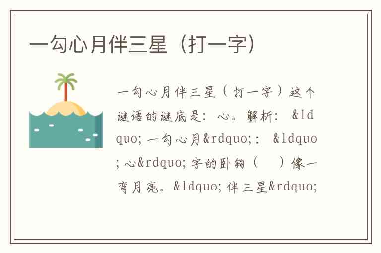 解析: “一勾心月”: “心”字的卧钩(乚)像一弯月亮。
