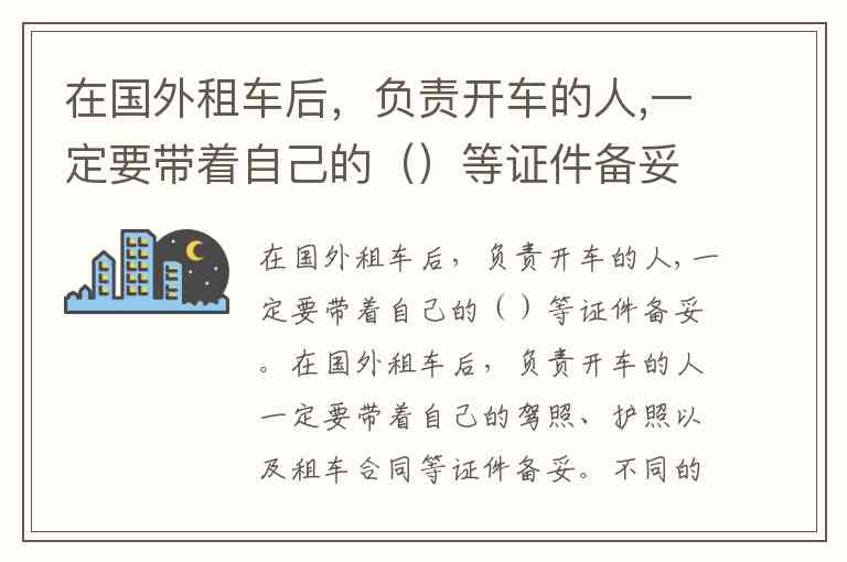 在国外租车后,负责开车的人,一定要带着自己的()等证件备妥。