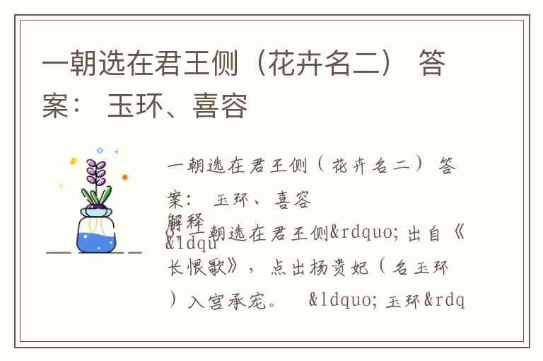 一朝选在君王侧(花卉名二) 答案: 玉环、喜容
