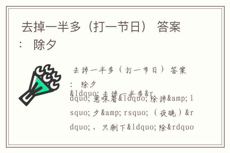“去掉一半多”意味着“除掉‘夕’(夜晚)”,只剩下“除”,恰好对应节日“除夕”。