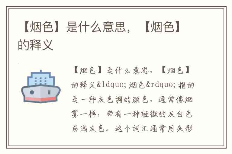 “烟色”指的是一种灰色调的颜色,通常像烟雾一样,带有一种轻微的灰白色或浅灰色。这个词汇通常用来形容那种淡淡的、模糊的颜色,给人一种柔和、朦胧的感觉。
