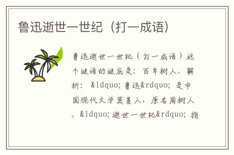 鲁迅逝世一世纪(打一成语)