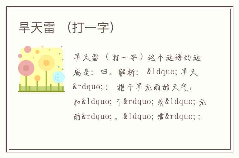 因此,“旱天雷”=“雷”-“雨”=“田”。