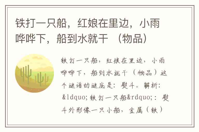 铁打一只船,红娘在里边,小雨哗哗下,船到水就干 (物品)