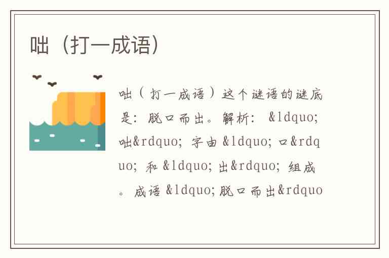 成语 “脱口而出” 字面意为从嘴里说出来,正与“口”和“出”的结构相呼应。