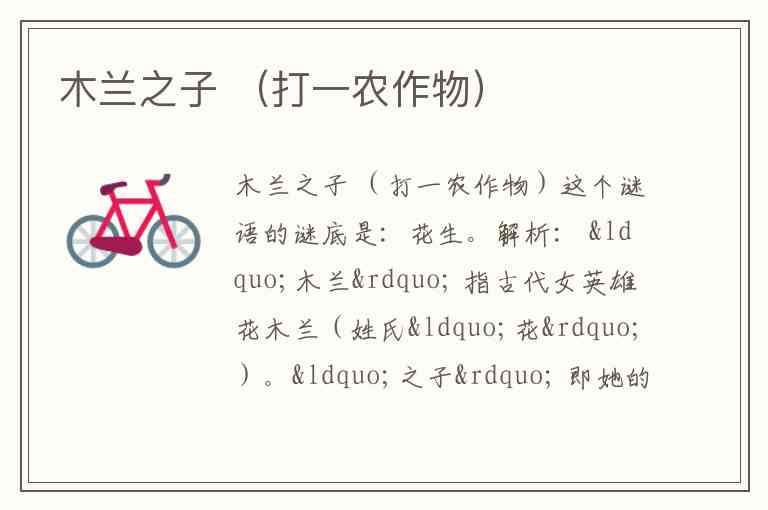 花木兰的孩子 → “花” 生 → 扣农作物 “花生”。