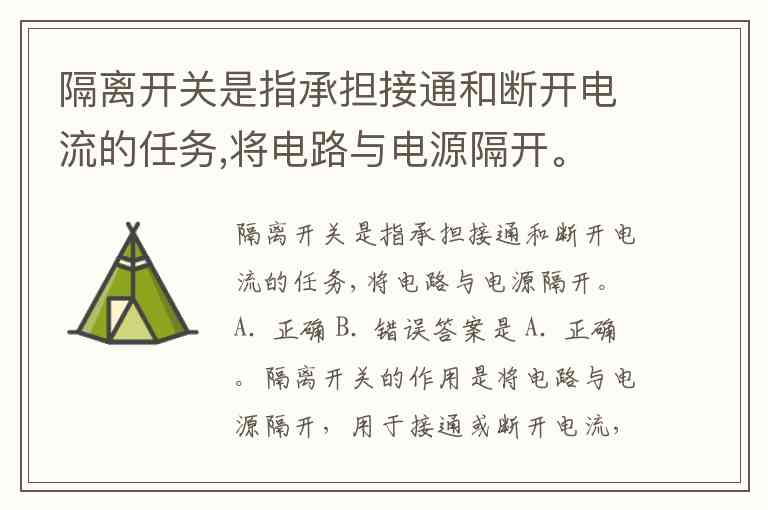 隔离开关是指承担接通和断开电流的任务,将电路与电源隔开。 A. 正确 B. 错误