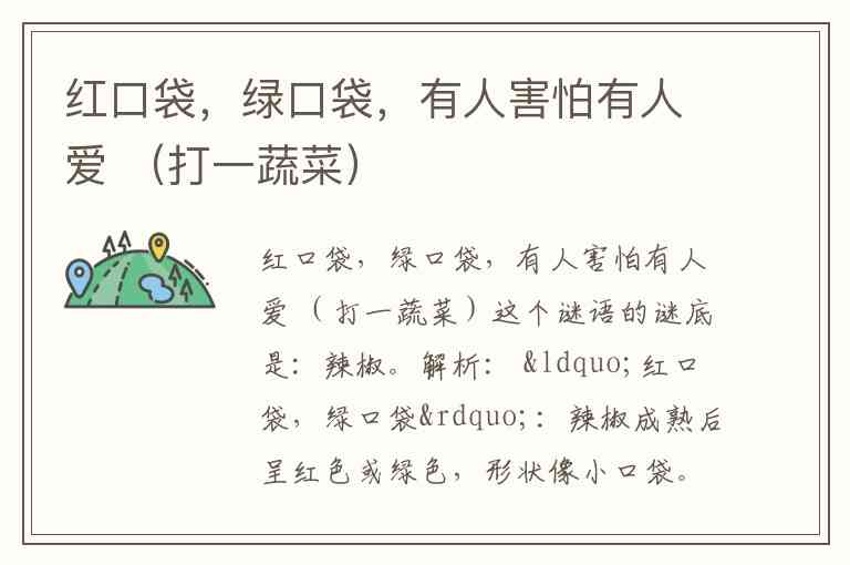 解析: “红口袋,绿口袋”:辣椒成熟后呈红色或绿色,形状像小口袋。