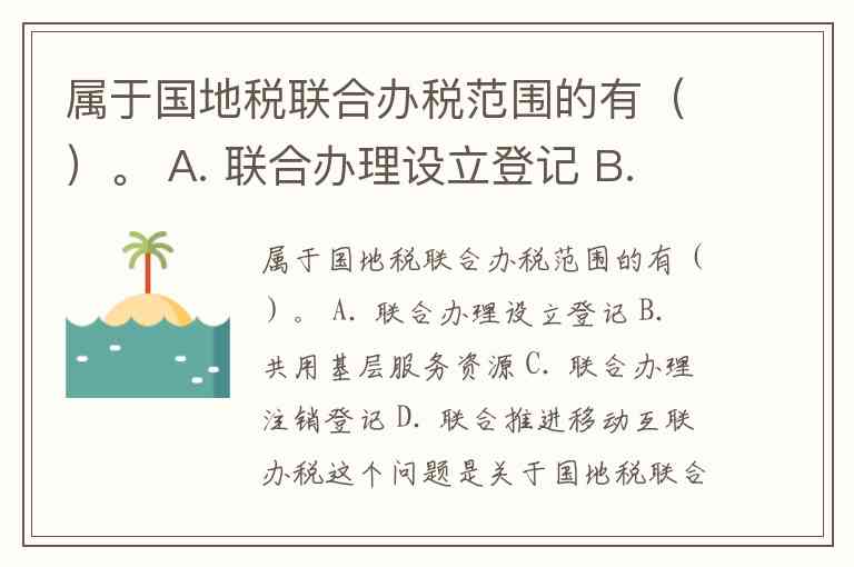 属于国地税联合办税范围的有()。 A. 联合办理设立登记 B. 共用基层服务资源 C. 联合办理注销登记 D. 联合推进移动互联办税