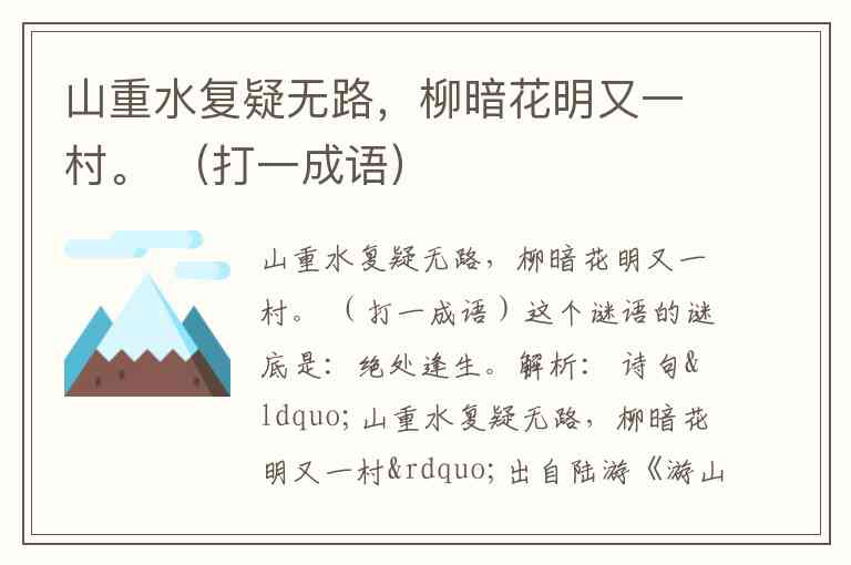 解析: 诗句“山重水复疑无路,柳暗花明又一村”出自陆游《游山西村》,形容在看似无路可走时忽然出现转机。