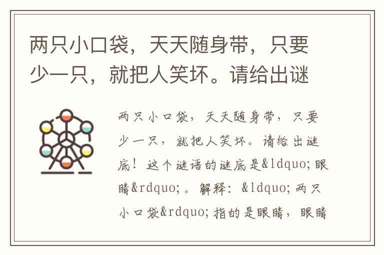 两只小口袋,天天随身带,只要少一只,就把人笑坏。请给出谜底!