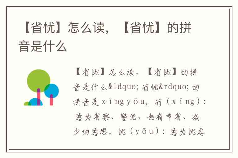 【省忧】怎么读,【省忧】的拼音是什么