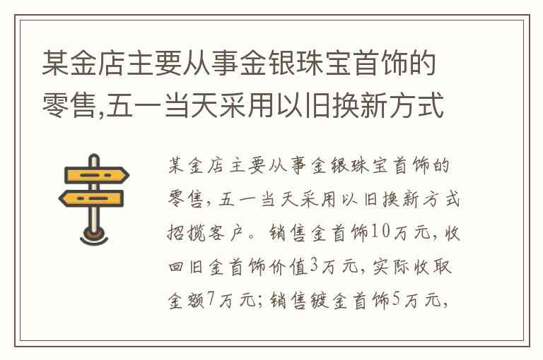 金首饰销售:销售额 10 万元,收回旧金首饰 3 万元,实际收取金额 7 万元,消费税税率为 5%,增值税税率为 13%。